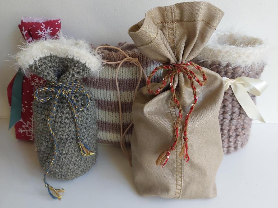 Vi syr julesløjfer til pynt og pakker. Vi strikker, hækler og syr gaveposer og laver små julesokker til bordpynt og guirlander. Du kan også se, hvordan du kan pakke gaverne ind i stof, f.eks. med japanske foldeteknikker, så indpakningen i sig selv bliver noget særligt.